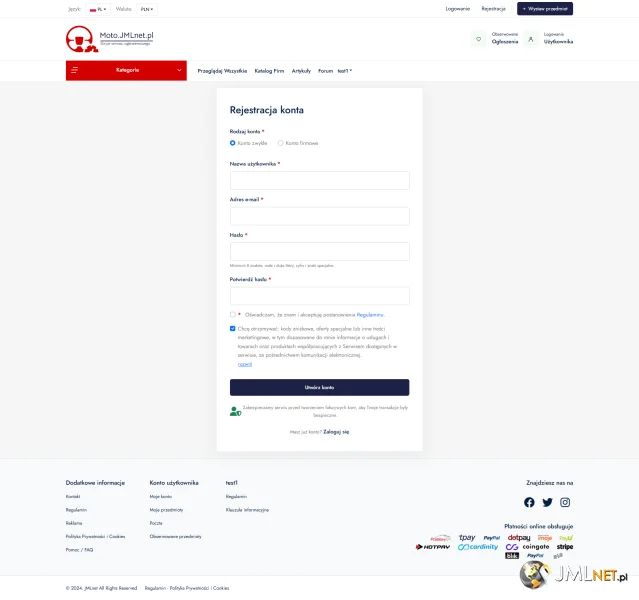 Skrypt umożliwia tworzenie kont firmowych z opcją dodawania ogłoszeń w ramach wykupionych abonamentów okresowych. To elastyczne rozwiązanie wspiera profesjonalnych sprzedawców pojazdów.